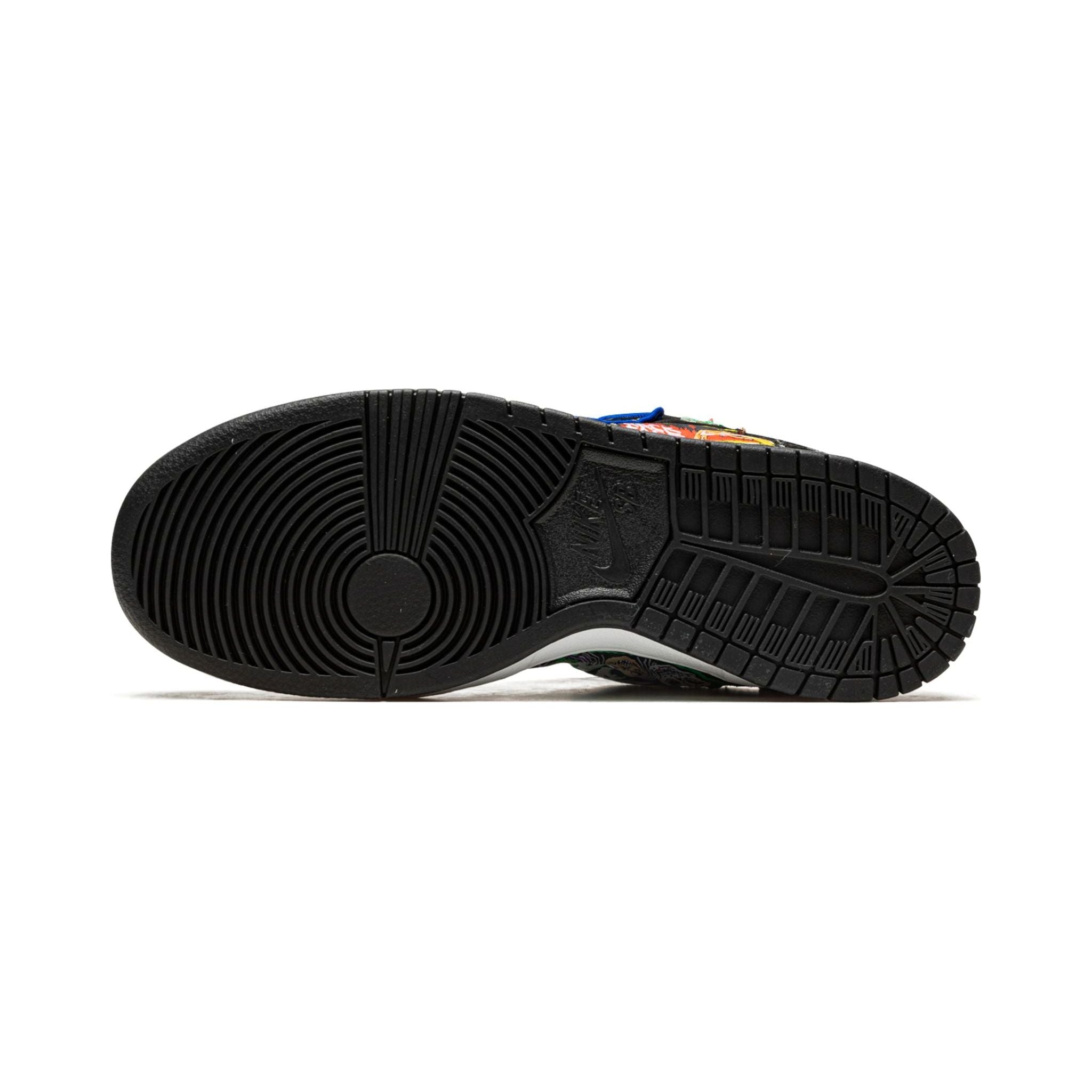 Nike SB Dunk Low Pro QS "Neckface" stands out for its bold and irreverent design, the result of a collaboration with the artist Neckface. The black leather upper serves as a canvas for a set of graphic patches with unique illustrations, reflecting the artist's distinctive style.