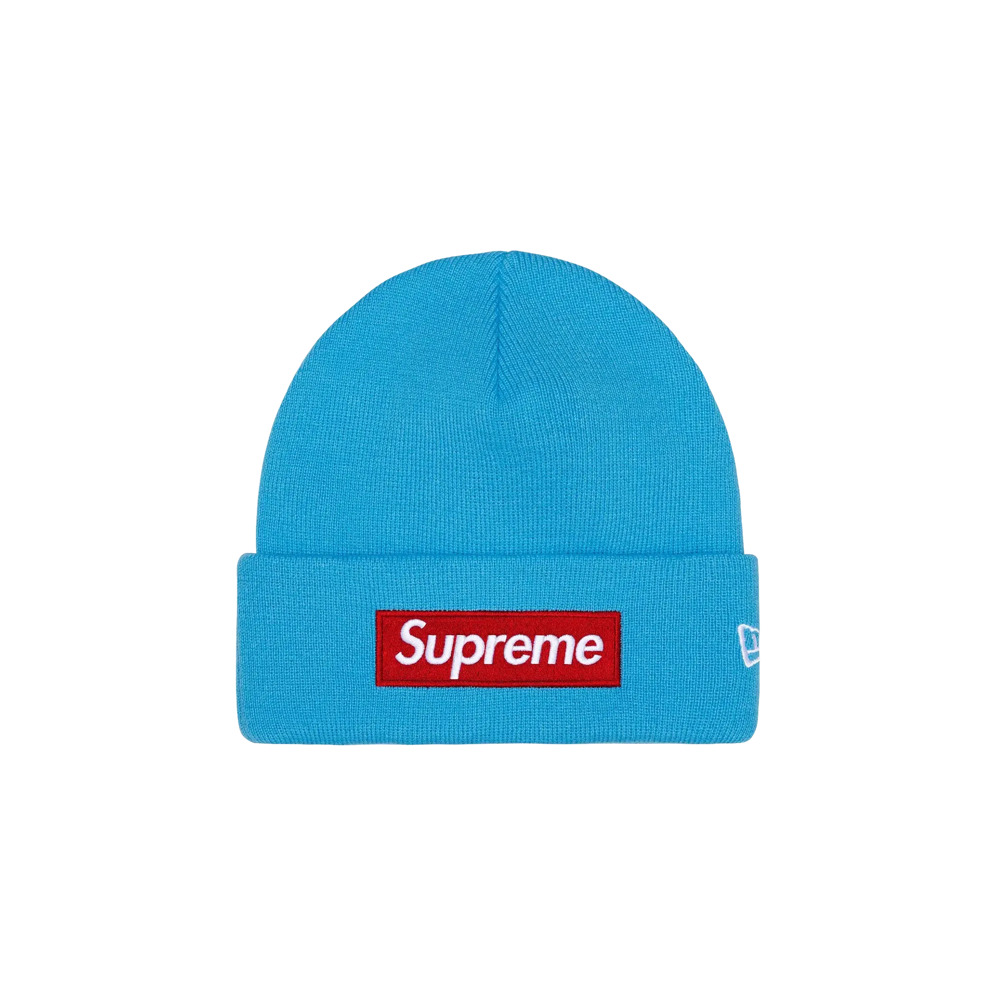 The Supreme New Era Box Logo Beanie (FW25) - Cyan is one of the most vibrant pieces of the Fall/Winter 2025 collection. This Supreme beanie in blue stands out for its modern and striking tone, being an essential item of the FW25 line.