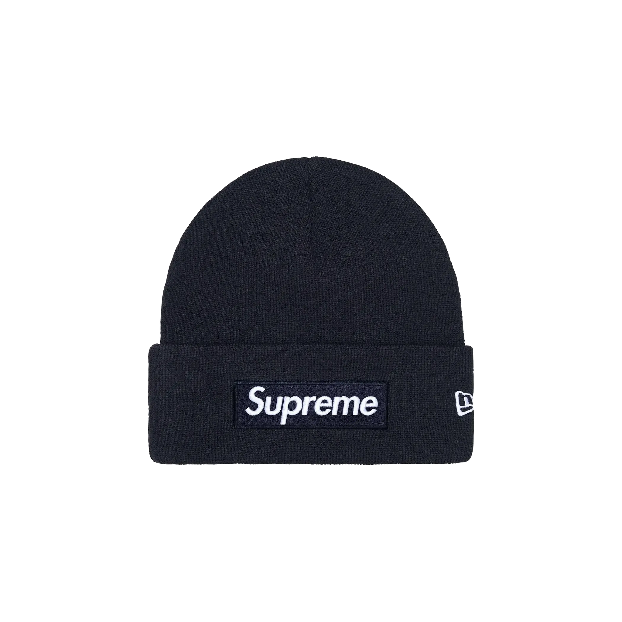 The Supreme New Era Box Logo Beanie (FW25) - Navy is one of the key pieces of the Fall/Winter 2025 collection. This Supreme beanie in navy stands out for its classic and timeless shade, being a must-have item of the FW25 line.