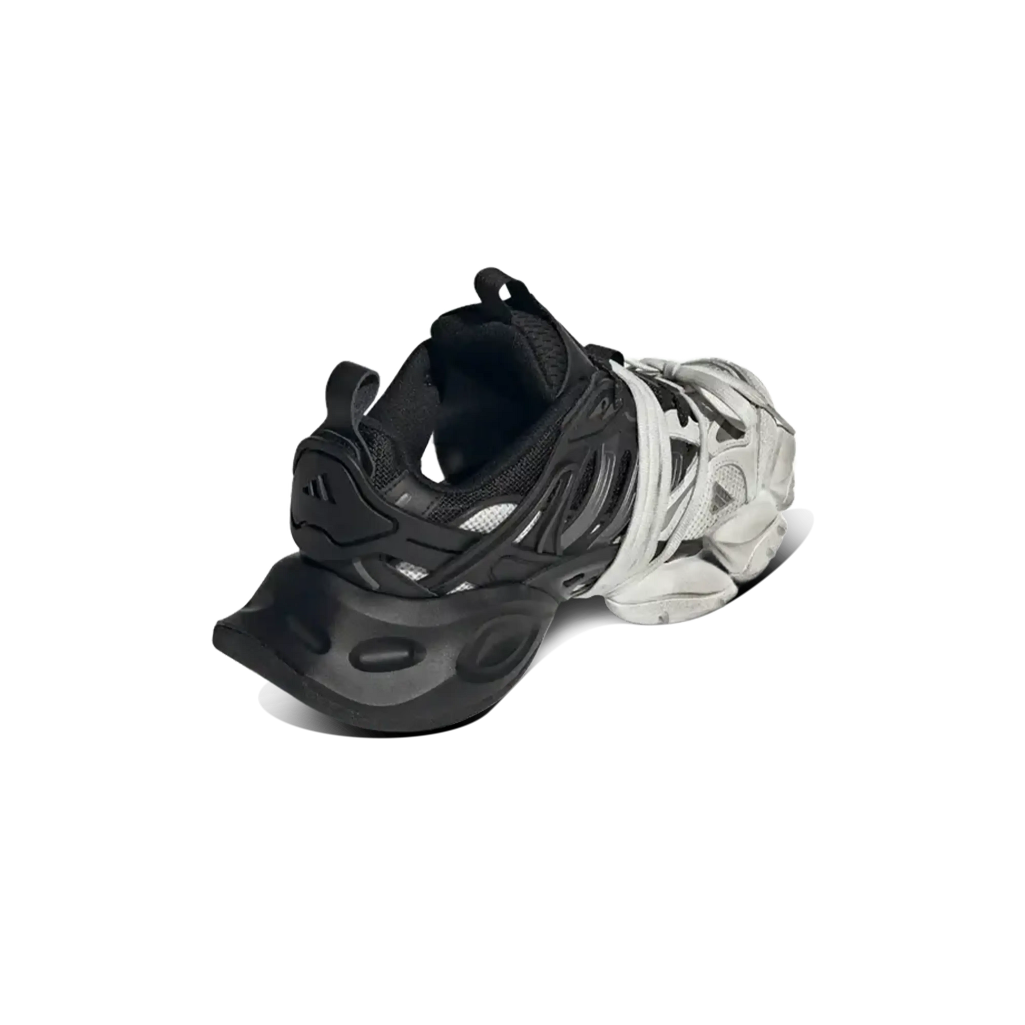 Its breathable mesh construction is reinforced by premium overlays in suede and leather, creating a sharp contrast between the white and the deep black details on the iconic three stripes. The bulky, beveled midsole not only ensures exceptional comfort throughout the day but also offers a platform aesthetic that defines its bold character.