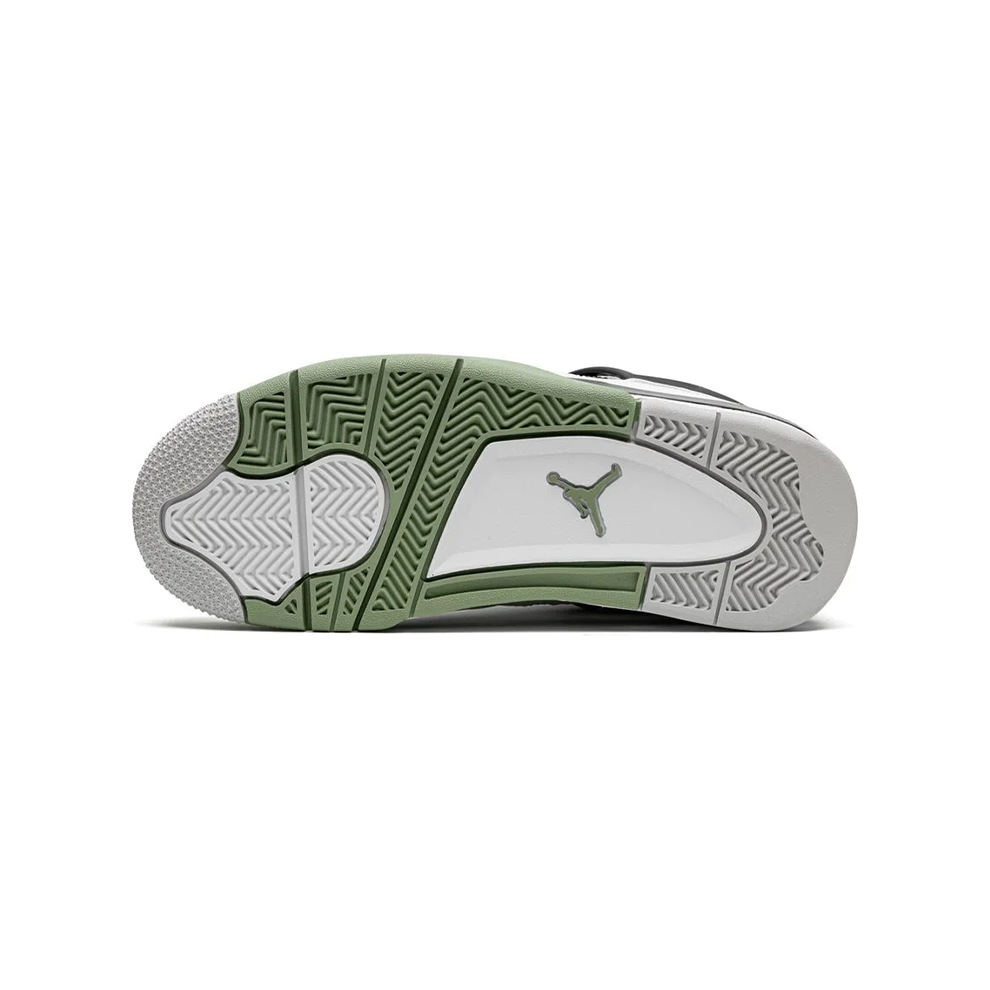The Air Jordan 4 Seafoam are a new edition of the 1999 Jordan 4 model built in white leather with oil green details in the colorway "Seafoam".