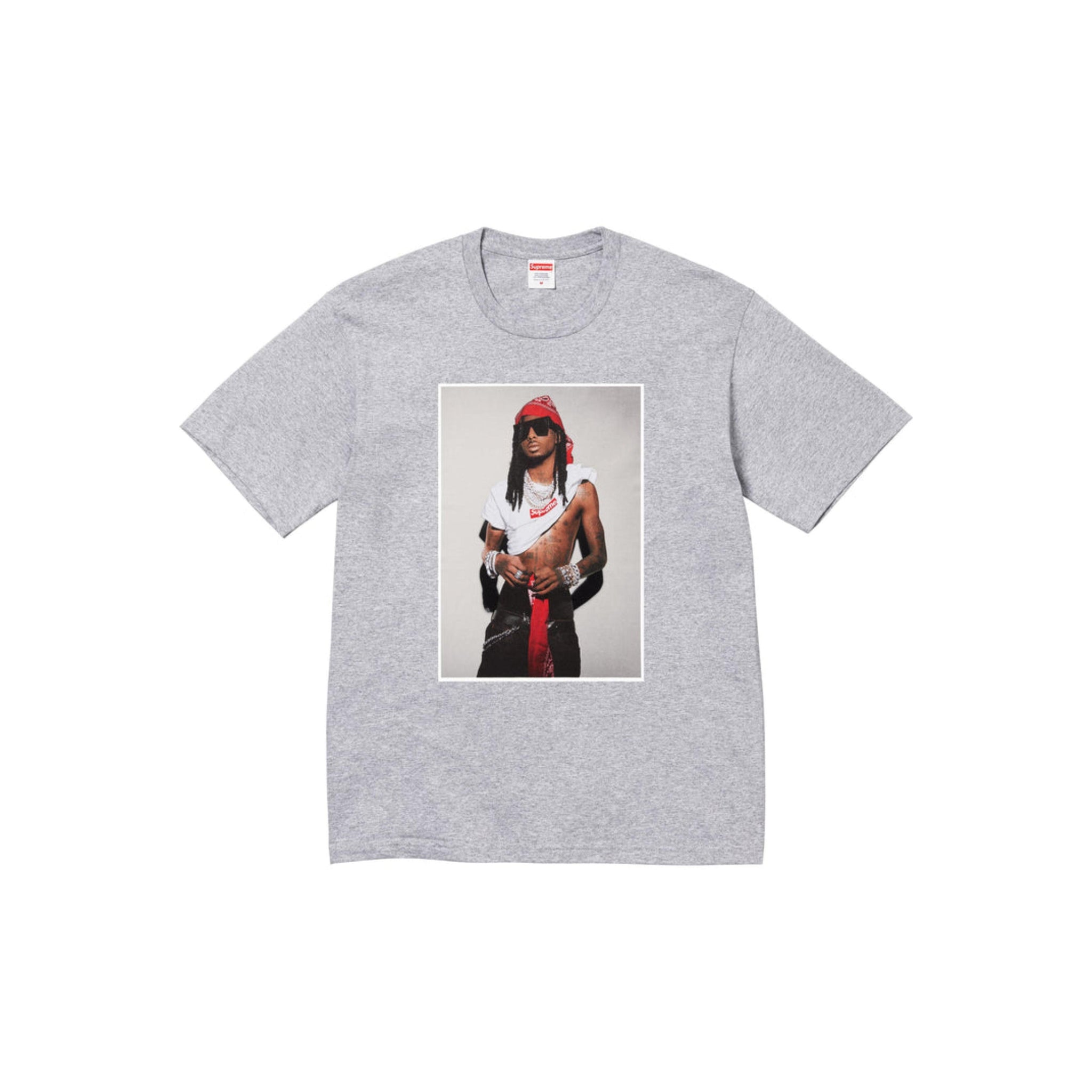 A Supreme Playboi Carti Tee Grey (Gray) honors the famous American rapper Playboi Carti, immortalized in this piece in gray with an iconic image.
